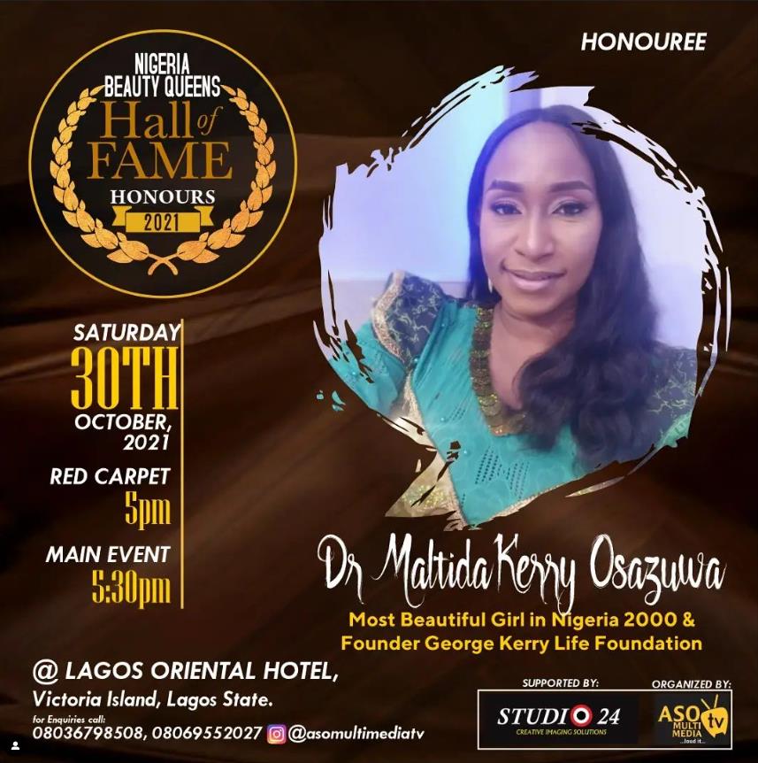 Matilda Kerry Osazuwa ist die „Miss Nigeria 2000“ vom MBGN – Most Beautiful Girl in Nigeria 2000 und Ärztin im Lagos University Teaching Hospital (LUTH).
