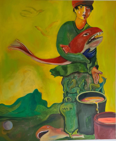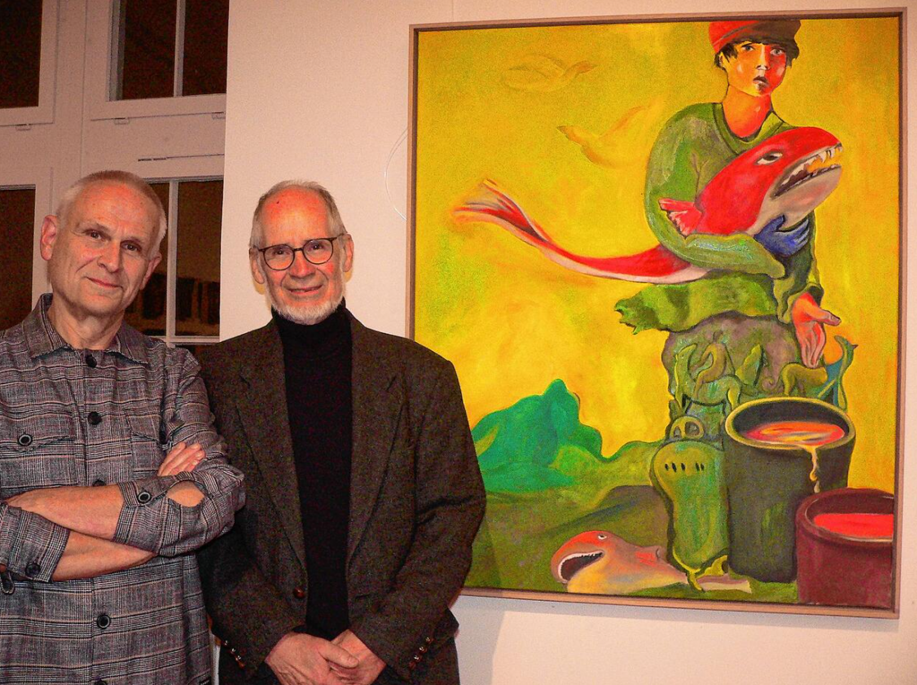 Seit 1996 ist er Augenarzt in Rheinfelden. Die rund 50 Arbeiten, die 2023 in einer Ausstellung zu sehen waren, entstanden alle – bis auf ein Bild – in den vergangenen zwei Jahren: „Da hatte ich durch Corona erstmalig mehr Zeit, nicht nur nachts oder am Wochenende.“ Im Gespräch mit Salfner erzählt er, wie seine Bilder entstehen – ohne feste Planung, aus dem Unterbewusstsein heraus: „Ich fange einfach an.“ Dann übermalt er sie oft, verändert sie. Übermalte Spuren entdeckt der Betrachter häufig. „Ich bleibe dabei immer im Gegenständlichen: hier ein Kopf, ein Gesicht, eine Figur. Landschaft interessiert mich nicht so.“ Die Frage, ob seine Bilder melancholisch seien, bejaht er: „Da ist immer Melancholie in der Kunst.“